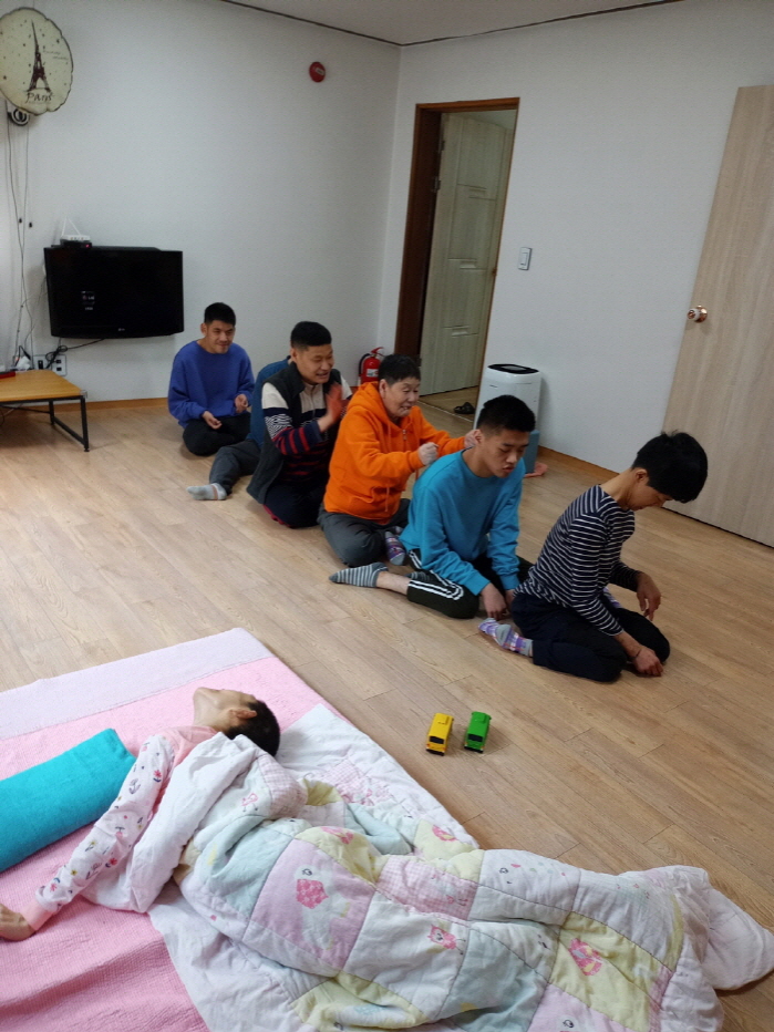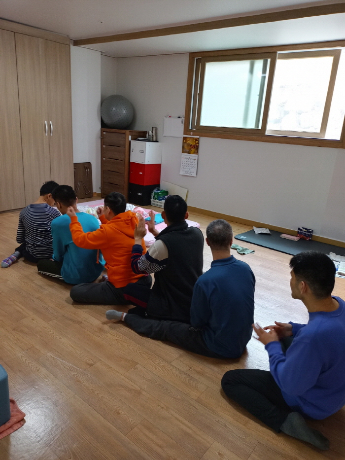 보시방 수요일 오전 프로그램 (토닥토닥) 페이지 정보 작성자 이세호 작성일22-03-16 14:22 조회2,324회 댓글0건 본문 보시방에서 수요일 오전마다 실시하는 프로그램 '토닥토닥'의 진행 광경입니다거주인들이 나란히 앉아 어깨를 토닥여 주며 피로를 풀고 유대감을 돈독하게 다지는 시간입니다 :) 댓글목록 등록된 댓글이 없습니다. 이전글 다음글 목록